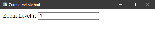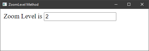 Sets the CEF ZoomLevel. The default (unzoomed) level is 0. Setting a positive value will increase the zoom, whereas setting a negative will decrease the zoom. The zoom scale is not linear; rather the effective scaling is approximately 1.2*level, so, setting the ZoomLevel to 1 will result in an approximate 20% size increase. ZoomLevel affects all instances of HTMLRenderer windows; it is not possible to have different ZoomLevels for individual windows.