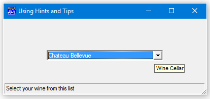 There is no reason why you cannot provide Hints and Tips. The next example shows how an object, in this case a Combo, can have both defined.