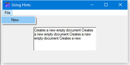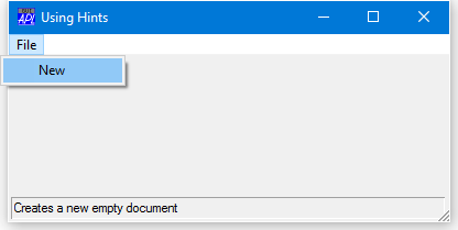 'Test.MB.F.New' ⎕WC 'MenuItem' '&New' ('Hint' HINT)