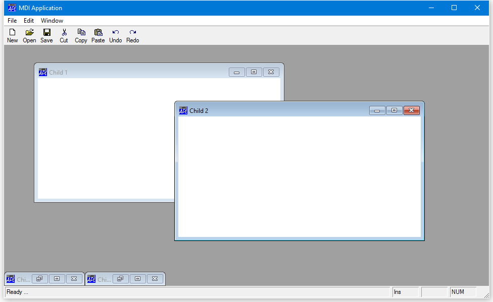 The multiple-document interface (MDI) is a document-oriented interface that is commonly used by word-processors, spreadsheets and other applications that deal with documents. An MDI application allows the user to display multiple documents at the same time, with each document displayed in its own window. Document windows are implemented as child forms that are contained within a parent form. When a child form is minimised, its icon appears on the parent form instead of on the desktop. An example MDI application is illustrated below.