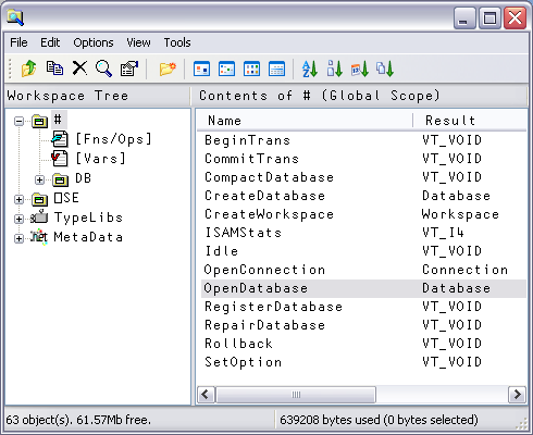 CreateDatabase CreateWorkspace ISAMStats Idle