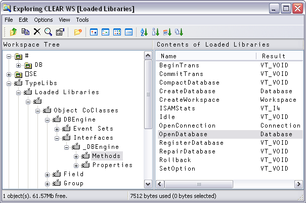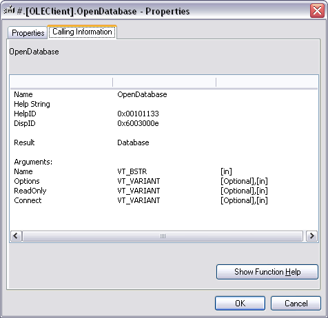 For example, the DAO.DBEngine OLE object exposes a method called OpenDatabase. You can obtain information about the OpenDatabase method as follows: