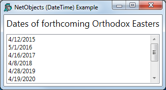 <TextBlock Text="Dates of forthcoming Orthodox Easters"