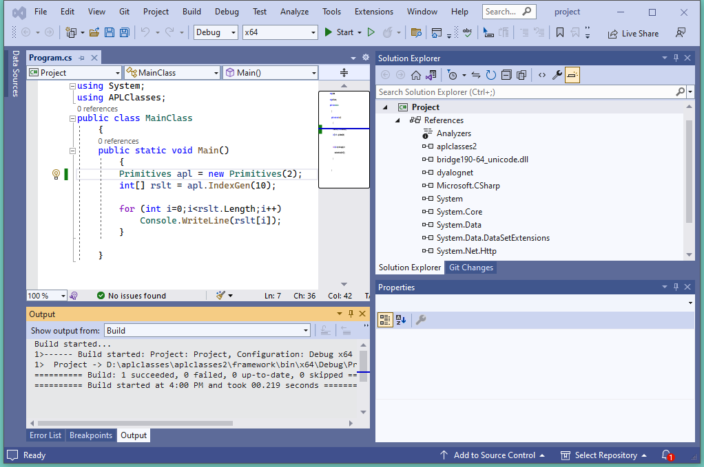 function, the constructor for this APL .NET class, is running here in APL thread 1, which is associated with the system thread 30732.