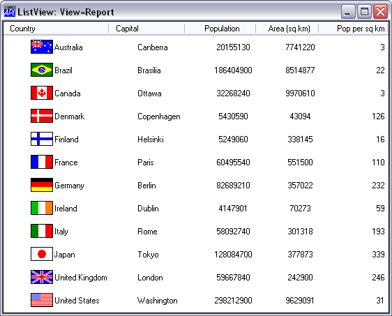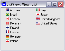 The ListView object is a window that displays a collection of items, each item consisting of an icon and a label. The ListView provides several ways of arranging items and displaying individual items. For example, additional information about each item can be displayed in columns to the right of the icon and label. An example of the use of a ListView object is the "My Computer" Windows utility.