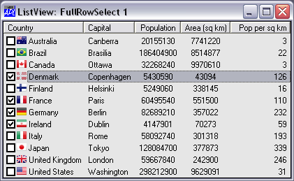 The picture below illustrates the effect on the appearance of a ListView object, of setting FullRowSelect to 1.