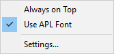 Use APL font | If checked, this item causes the information displayed in the Event Viewer window to be displayed using the APL font (the same font as is used in the Session window). If not, the system uses the appropriate Windows font. |