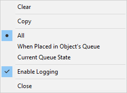 When Placed in Object's Queue | In this mode only events that have associated actions are displayed in the event viewer. Note that KeyPress events are always queued and therefore always appear, even if there is no associated action. |