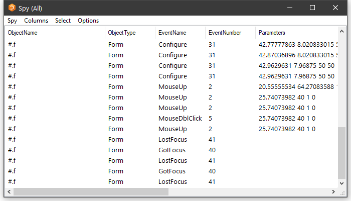 In the example illustrated above, the user has chosen to monitor events on a Form #.f