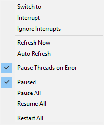 Ignore Interrupts | Allows you to specify that the selected thread should ignore weak interrupts. |