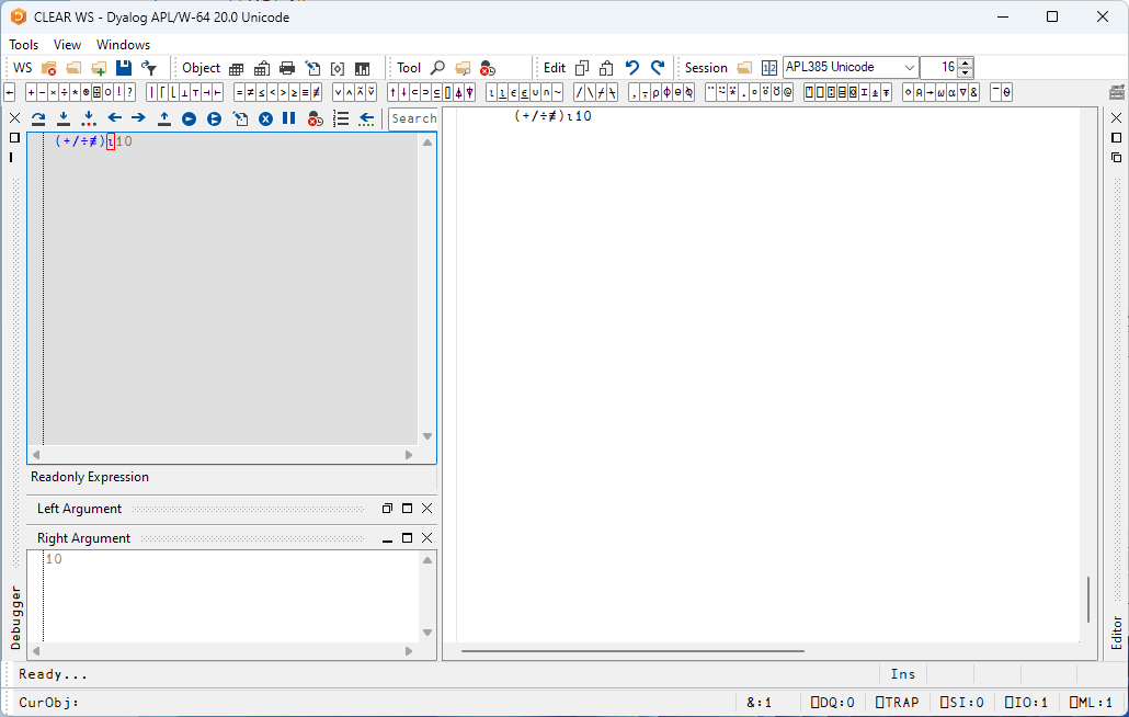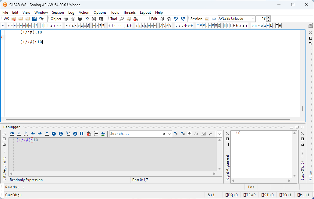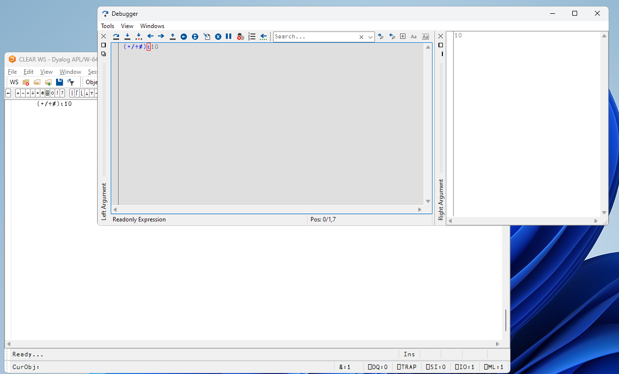 - If you move or resize the trace window, Dyalog APL remembers its position, so that it reappears in the same position when next used.