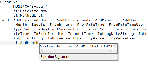 For example, in the example below, the mouse is hovered over the external function dt.AddMonths