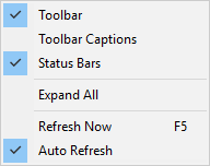 Refresh Now | Redisplays the TreeView and ListView with the current structure and contents of the workspace. Used if Auto Refresh is not enabled. |